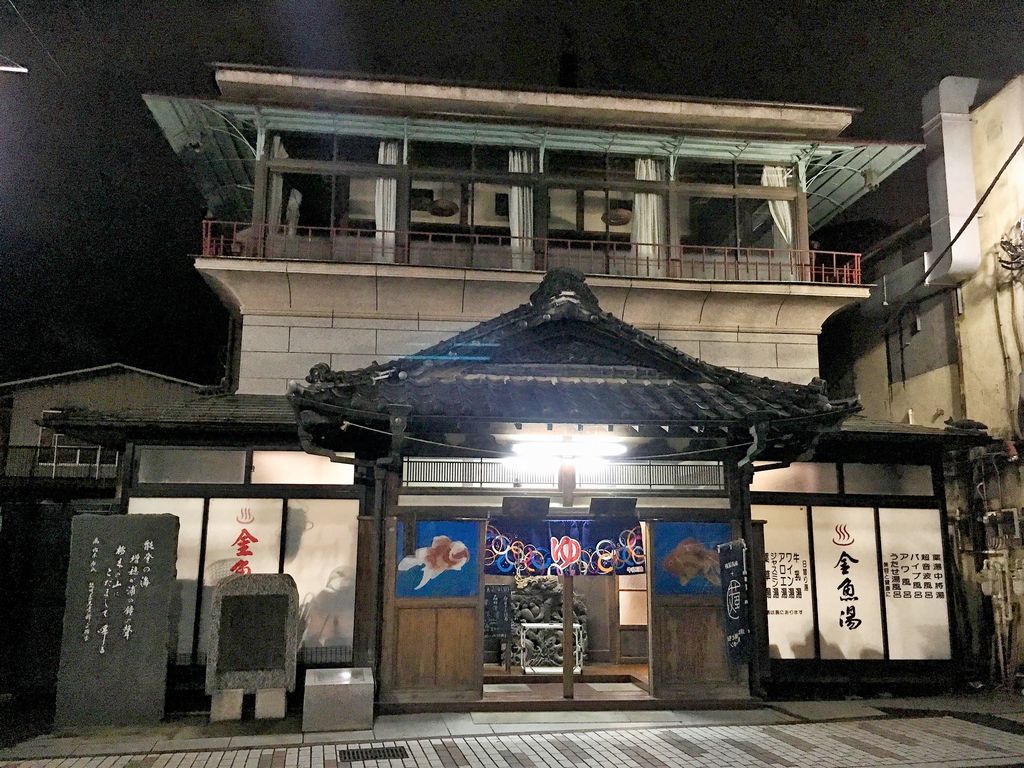 ともかく、金魚湯たるゆえんは、壁の一部をくり抜いて金魚の水槽にしているから。いつしか金魚湯、金魚の湯と呼ばれるようになったのだとか。ガラスが曇ってよく見えなかったけど。そして、魚が泳ぐ風景がモザイクタイルで描かれている。明治22年創業と歴史は古く、昭和28年の改築以来、昔ながらの風情を保ち続けている。観光客の多い土地柄、ふらっと立ち寄る人も多いのではなかろうか。玉川の湯(金魚湯)