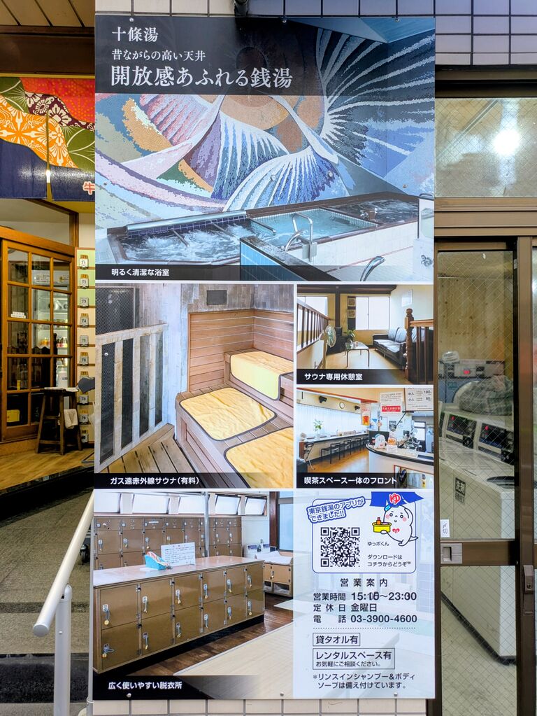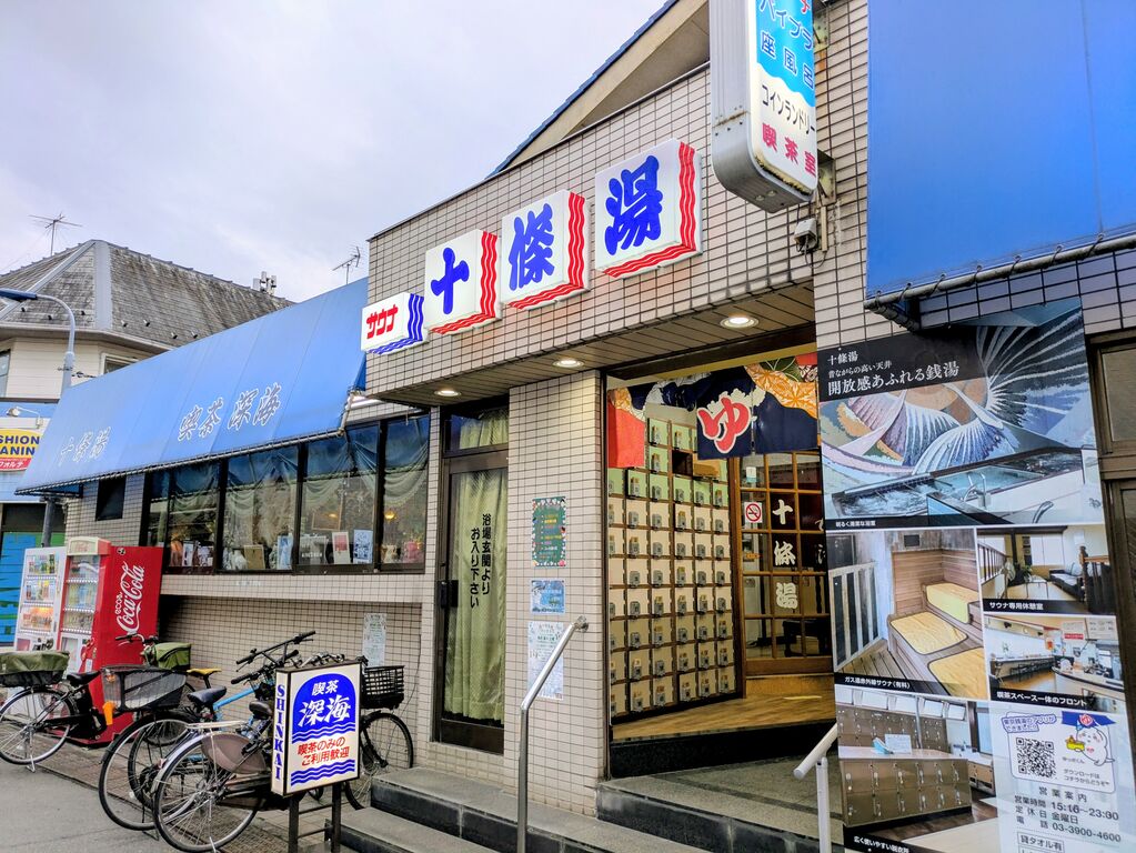 湯船はあつ湯、ぬる湯の2つ。ぬる湯側には座湯ジェットとバイブラあり。日替わり湯となっており、この日はイヨシコーラの湯。サウナも湯船もその日ごとに楽しみがあるのがいい。浴室の壁には男湯が2羽の大きな鳥、女湯が熱帯魚のタイルアート。これが「喫茶深海」の名前の由来か。ちなみに喫茶店の営業時間は15:00〜21:00、毎週月曜日と金曜日が定休。若い女性に人気のようだが、町の社交場としての一面も。レトロとレトロのかけ合わせがおもしろい。・十條湯(東京銭湯マップ)