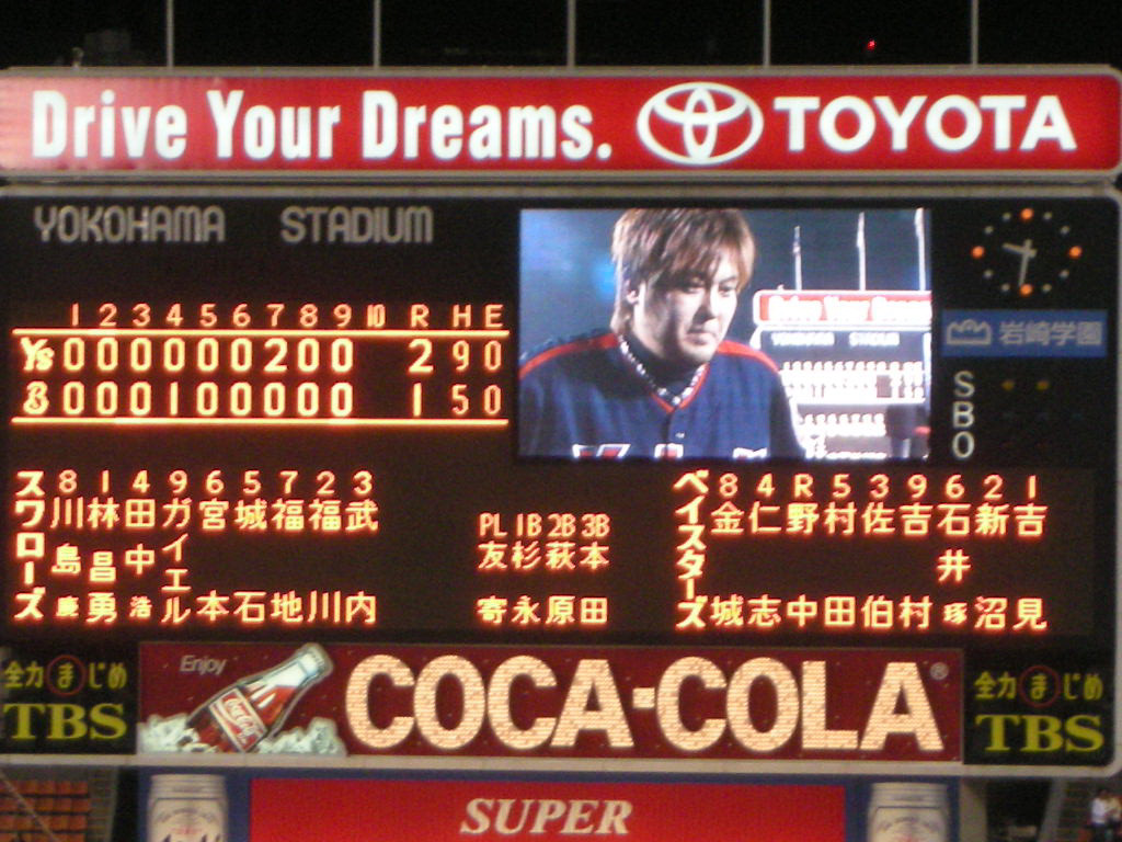 試合はというと、那須野も増渕も互いに本調子じゃなかったように思うのだが、それよりもバッターのほうが沈黙気味。なんとか先制して試合を優位に進めたいところで、4回に村田のソロHR。しかし塁にランナーを溜められないし、走者が出てもつながらないのが横浜の弱さを表している。