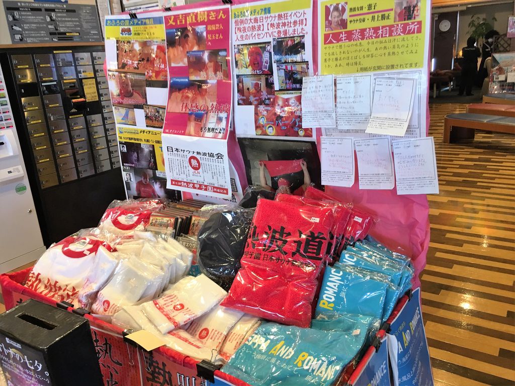 第二京浜(国道1号線)新鶴見橋たもとにあって、横浜市東部病院の真向かい。典型的なロードサイド店の立地だ。下階に立体駐車場を備え、店舗は3階に構える。まずは券売機でチケットを買うが、その傍らには熱波神社。ワゴンには熱波やOFRのTシャツ、グッズを並べて販売。ガチャガチャまである。館内を流れるBGMもOFR48という徹底ぶり。