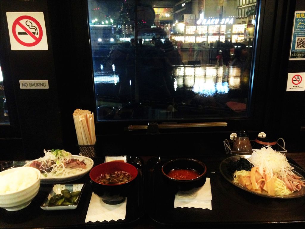 浴室内には他にバイブラ湯とジャグジー。露天には岩風呂と人工炭酸泉があるけれど、ぐるりと塀が囲んでいる。じつはこの店でおすすめしたい景色が、レストランのカウンター席から眺める鶴見川の流れ。対岸ではRAKU SPAが営業中。さすがにあちらの客の入り具合まではわからないけれど(笑)。ちなみにレストランは良心的な料金設定。仕事帰りのサラリーマンの味方は、平日22時以降の夜丼だ。