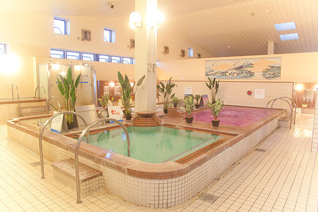 オープンは平成12年。京浜地区におけるスーパー銭湯の第1号店だという。そのせいか、例えば洗い場などには年季を感じる。湯、水、シャワーはそれぞれ押しボタン式だ。ジャグジー、バイブラ湯、電気風呂、打たせ湯と思いつくままの湯船を揃え、「13種類のおふろ」と数で勝負するのも昔の発想か。入浴剤を使用した湯船を2つ並べ、ぬる湯、あつ湯のはっきりとした温度差を付けているから、交互浴が気持ちいい。(写真はおふろの国公式サイトより転載)