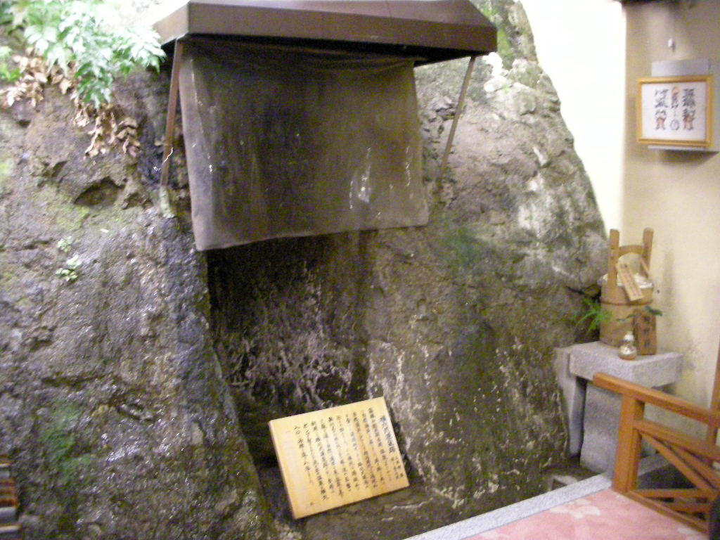 箱根湯本には日帰り専門の温泉施設が数ヶ所あるが、「早雲足洗いの湯 和泉」もそのうちの1つ。駅から塔ノ沢方面へしばらく歩き、昭和8年竣工の旭橋(土木遺産)を渡るとすぐ左手にある。建物のすぐ脇まで山が迫っているのだが、館内に入ってみると岩肌むき出しの岩盤がそのままロビーの壁になっていた。玄関側には明治時代の横穴式源泉跡が残されている。手掘りで掘り進み、岩盤の亀裂から自然湧出する温泉をかき集めたもので、奥行きは56mだという(内部は立ち入り不可)。現在、こちらでは7ヶ所の源泉を使用しているが、そのうちの1つ(7号泉)は横穴湧泉。ポンプで汲み上げる温泉が多いなか、こうした源泉は歴史遺産と言えるだろう。