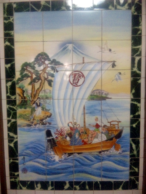 2枚目に掲載した写真は脱衣所入口にある宝船のタイル絵です。
