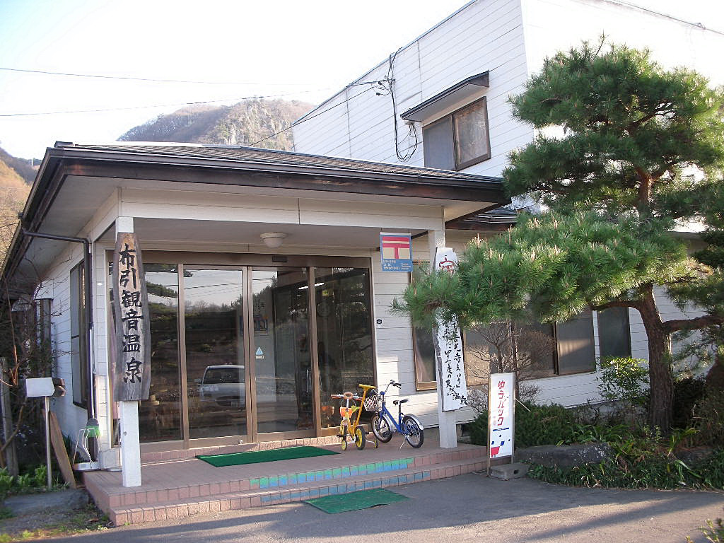 県道40号線(諏訪白樺湖小諸線)の沿道にあり、目印は屋号を記した水色のタンクと「朝風呂7:00から」という小看板。そのわきには常満バス停があるものの、地域のコミュニティバス的な役割のため、旅行者にとっての利用価値は低い。建物の背後には700m級の山なみがつづき、県道とほぼ平行して北に千曲川が流れる。まとまった住宅地もあるが、周囲には畑も広がるのどかな環境。近隣にも温泉がいくつか湧出しているが、布引観音温泉としては一軒宿の営業である。