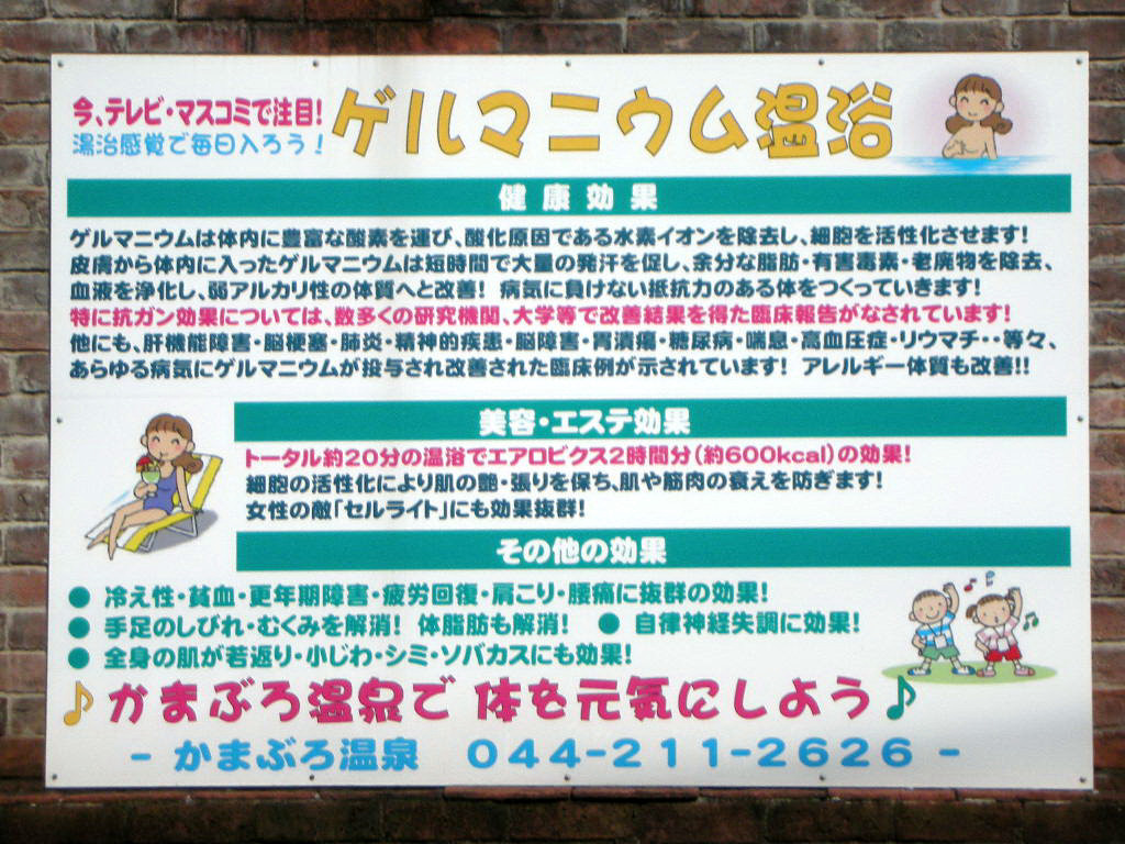 かまぶろ温泉は開業当時の蒸し風呂にルーツを持つという。「木製の縁台にむしろを敷いた上に入浴客が横たわり、縁台の下から蒸気を出して全身浴していたらしい」(高橋誠一「神奈川の銭湯」かもめ文庫)というから、日本式スチームサウナの原型ともいえるだろう。こんな入浴の仕方もいずれ復活させてみたらどうだろう。いまでもじゅうぶん楽しめる銭湯ではあるのだが。