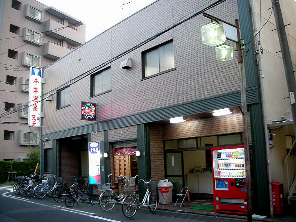 武蔵新城駅から南へまっすぐ歩いていくと、「サウナつかさ新城」のあたりから庶民的な雰囲気が始まる。児童公園南側の交差点を斜めに入り、しばらく行くと今回ご紹介する千年温泉がある。コインランドリーを併設しており、店舗の前にはいつも数多くの自転車が止まっている。店舗併用住宅と共同住宅が混在する地域にあって、千年温泉は町のオアシスとして賑わっているようだ。