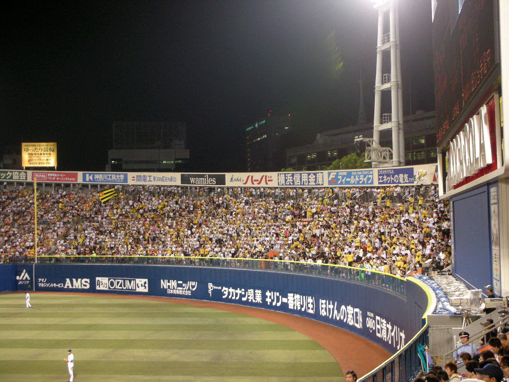 今季の球場観戦は18試合目だというのに、阪神戦は今季初。ファンの数で圧倒され、ホームなのにアウェーのような空気が漂うという、いちばん観戦したくない相手だ。試合開始の30分ほど前はレフトスタンドにも若干の余裕があったが、いざプレーボールとなる頃にはすでに立ち見が出ている。こうなると黄色いユニフォームの崎陽軒の売り子まで憎く見えてくる。なぜかライトスタンドにも金本ユニと赤星ユニが紛れ込んでいる。横浜ファンが紳士的だとはいえ、「勇気があるな」と言わざるを得ない。右も左もわからないと言うなら仕方がないけれど。
