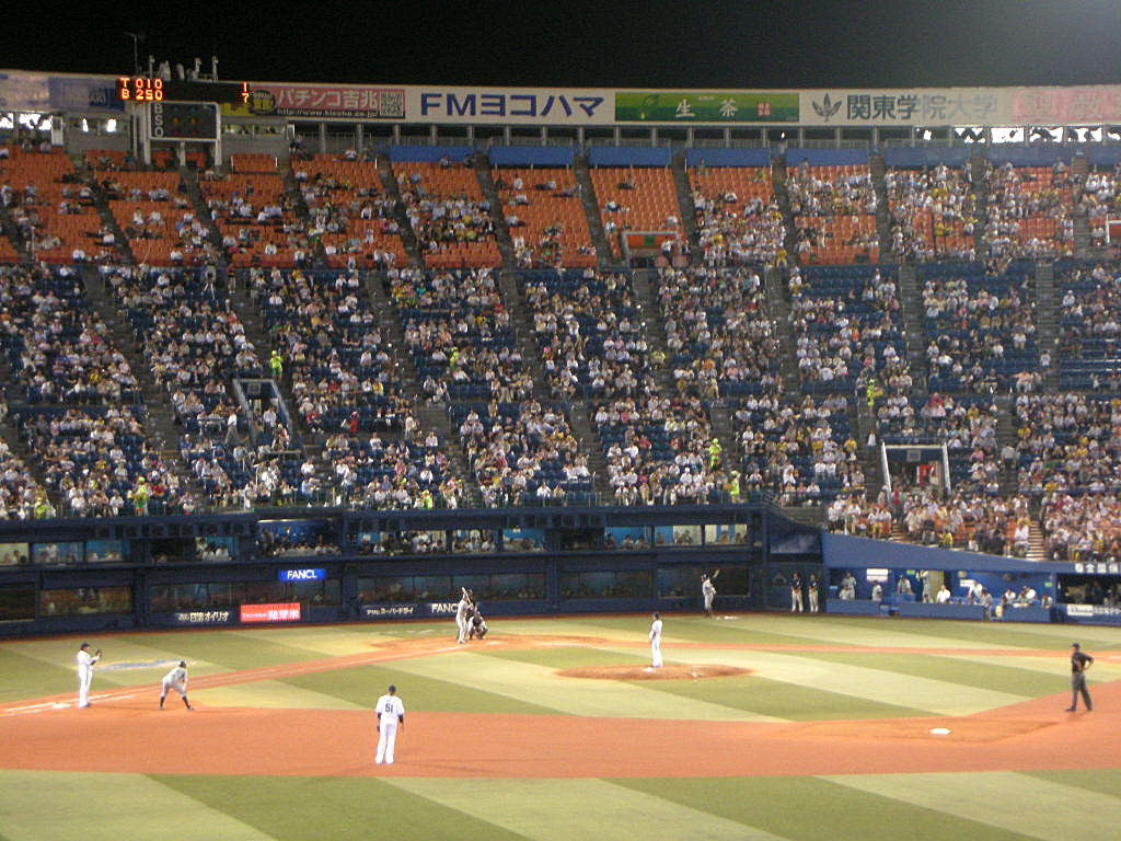 シーズンも残りわずかとなり、今年も上位争いとは無縁だった横浜は、来季に向けての若手の顔見せが始まった。とはいっても2軍の湘南シーレックスは、今年もイースタン優勝を狙える位置につけている。そう、毎年この図式なのだ。活きのいい若手を引っ張って来たいけど、シーレックスは優勝したい。ベテランをシーレックスの補強に回したいけど、そのベテランがふがいない。まさにジレンマ。そんな状況下で今日の阪神戦には、3年目の田中健二朗が初先発。かつてはエース三浦が付けていた、背番号46の若手に期待だ。対するはプロ20年目の下柳。年齢にして倍も違う大ベテランだ。