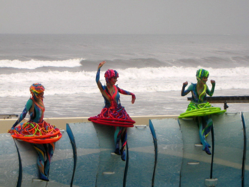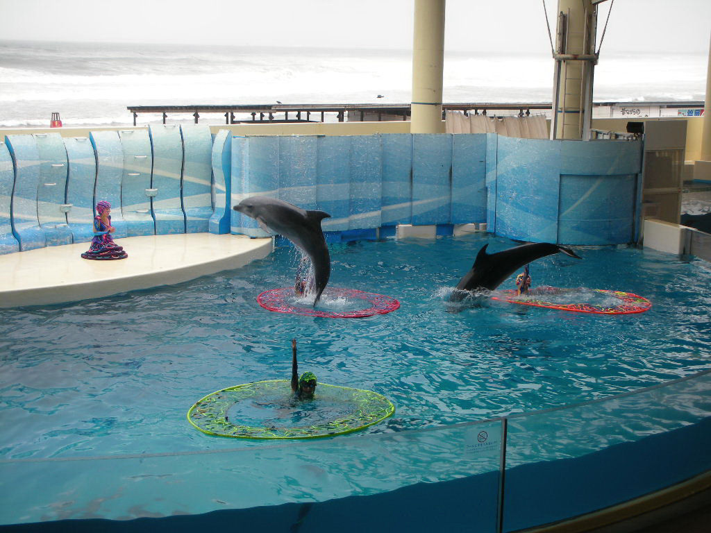 新イルカ・アシカショー「きずな」も、ほかの水族館では類を見ない内容だ。高さや速さにこだわらず、トリーターの合図に従っているのかどうなのかもよくわからない。調教ではなく対等なのだろう。観覧席からは、晴れていれば江ノ島や片瀬海岸をきれいに見渡すことができる。