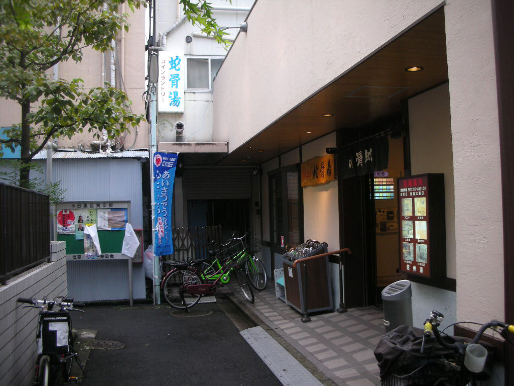 浅草は江戸時代より東京きっての繁華街で、浅草寺や寄席などには毎日多くの観光客が訪れる。その浅草で江戸時代から続く銭湯が蛇骨湯だ。この地にあった蛇骨長屋が屋号の由来だという。国際通りと雷門通りの交わる田原町交番近くにあって、ふれあい通りから路地を入っていく。下町風情の佇まいかと思いきや、平成21年12月に内外装を改修しており、こざっぱりと都会風。券売機でチケットを購入し、フロントへ。ロビーは丸テーブル1つしかないが、インターネット接続のパソコンや携帯電話の充電器など、客層のツボを押さえている。