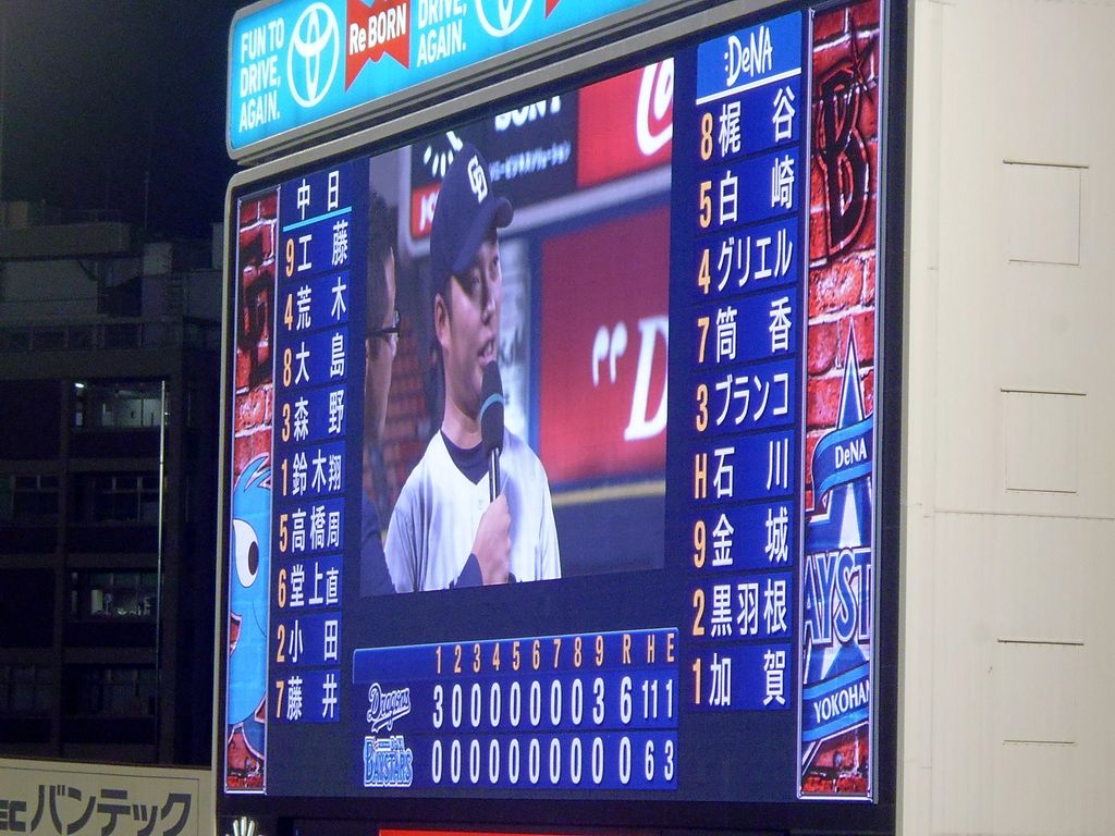 昨日はブランコの劇的サヨナラ弾で勝利したが、あとを追う5位中日との差は2ゲームとまだ油断はできない。さらに突き放して上位チームとの対戦に弾みをつけたい。横浜の先発は、前回の登板で初完封勝利を挙げた山口俊(#11)。中日はローテーションの谷間を埋めるべく抜擢された、プロ4年目の武藤祐太(#25)。大事な3連戦とあって、今夜もライトスタンドは多くのファンで膨れ上がっていた。