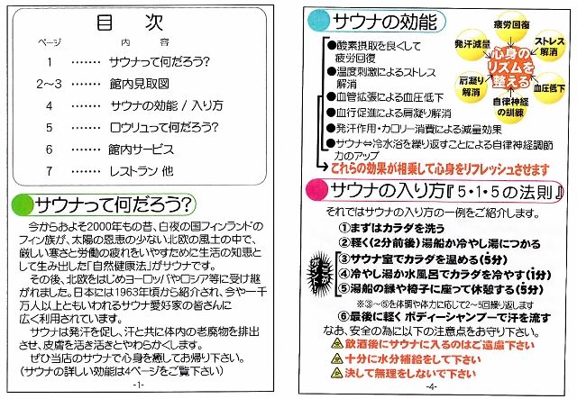 (利用案内のチラシ。ご丁寧に目次がついている)