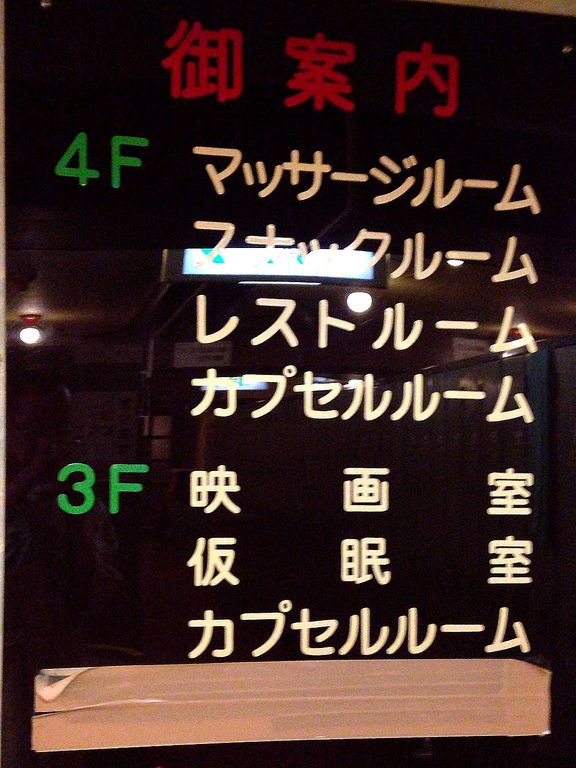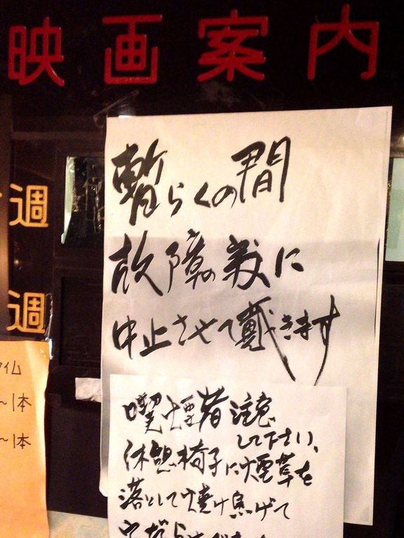 さらに3階に下ると仮眠室。やたらと広いが、客はまばら。さらに映画室もあるのだが、映写機は昨秋訪ねた時からずっと故障中。こちらのまとめサイトによれば、ポルノ映画が昼夜2回上映されていたようだ。サウナとポルノ映画でだらだら過ごして1日1,500円と考えれば、かなり安い娯楽だ。