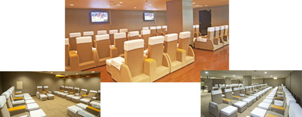 受付は専用階段を降りて地下1階。料金を支払い、下足箱の鍵と引き換えに、ロッカーキーと、タオルや館内着が入ったバッグを受け取る。そしてまた階段を降りて、地下2階のロッカールームへ。浴室と隣接しており、バスタオルや館内着は浴室手前の棚を利用する。平日の真昼間とあって、館内に客はまばら。何か所かあるリクライニングルームは薄暗くて(半消灯)、おまけに静まり返っている。歌舞伎町という土地柄、昼夜逆転の客がいるのかもしれないし、しかし終電後などは客がどっと押し寄せるのかもしれない。