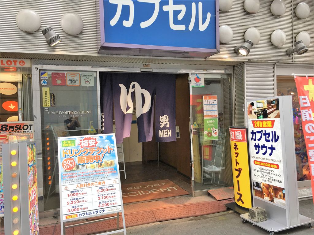 仮眠室の扉には、「当館では痴漢や公然猥褻行為が増えております(男性同士での被害や行為)」という貼り紙。恐ろしくて扉を開けられなかった。インターネットカフェ感覚ならネットブースのプランを利用すればよいし、大型のカプセルもあるから、利用の用途(昼寝〜宿泊)や予算に応じて選べばよい。大型店ではないぶん穴場かもしれないし、サウナをあまり利用したことのない人にもおすすめできる雰囲気だ。スパリゾートプレジデント ※男性専用