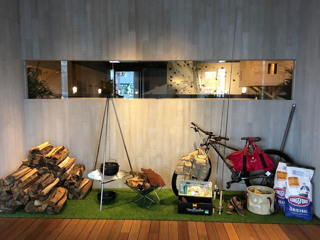 今年6/30に閉店したサイタマ健康ランドを改装したが、現地を訪ねてみればその面影は一切なし。それどころか一見して温浴施設とはわからない、見事なまでの変身ぶり。自動ドアを開ければ、アウトドア用品店のディスプレイと見紛う演出。おしゃれなBGMも聞こえてくる。かつては団体客を迎えていたであろう無駄に広かったロビーは、驚きの光景へと大変貌を遂げていた。