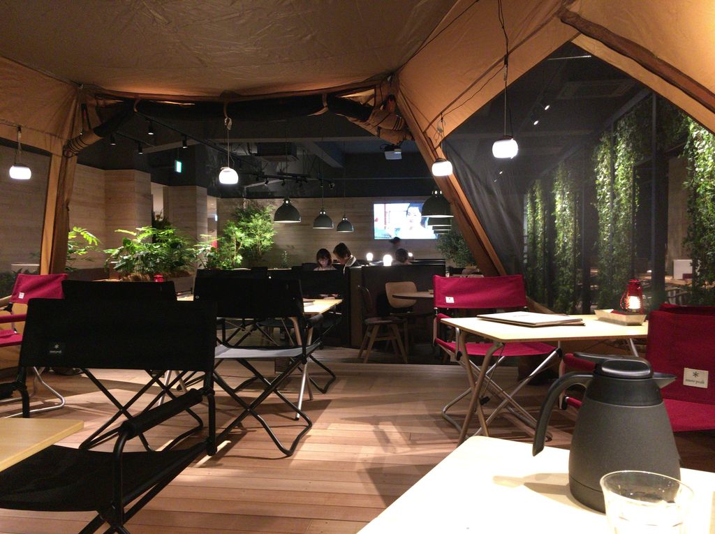 いちばん驚いたのはレストランだ。かつてのステージ付き大広間は、屋内になのにアウトドアな雰囲気へと一変。まるで高級な高原リゾートを訪ねているかのようだ。カウンター席、テーブル席のほか、大型テントを張り巡らせてしまう遊び心も素敵だ。ワイルドにステーキでも奮発したいが、ワンプレートメニューならボリュームも料金もちょうどいい。