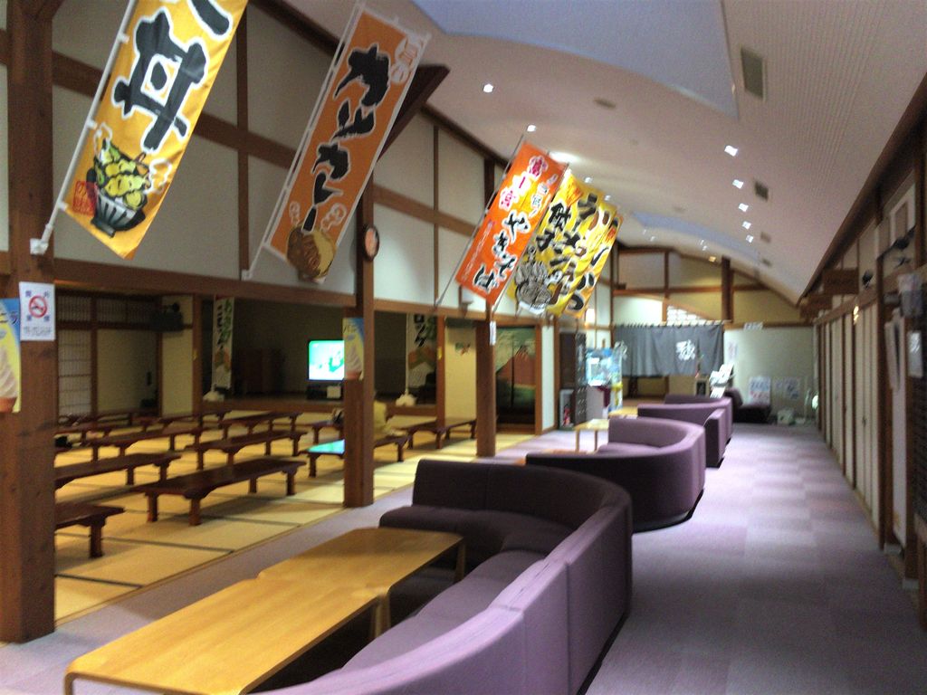 料金体系は1時間、3時間、1日と分かれているが、さすがに1日は持て余しそう。大広間でだらだら休憩しなければ1時間でじゅうぶんかも。券売機でチケットを購入し、下足箱の鍵とともにフロントに提示。小さな札を貰うが、これは引き換えの証。脱衣所のロッカーは好きな個所を使う。浴室への通路には幟を掲げて賑やかさを演出しているが、大広間はがらーんと客1人。きっと休日は賑わうのだろう。内風呂はバイブラとジャグジーを備えた広々としたもの。しかしここの名物は薬湯の露天風呂。14種類の生薬を配合し、独特のにおいと緑色にくすんだ感じは、いかにも効きそう。「温浴の華」という浴剤は地元静岡県で有名らしく、製造元の荷居屋は貞享元年(1684年)創業の老舗。それはさておき、開放感ある眺めは晴天ならなお素晴らしいだろうなと。富士山とは逆方向の、駿河湾を見渡す景色。