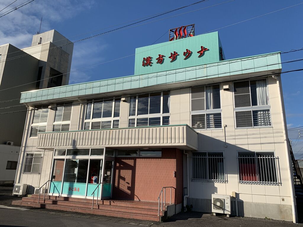 岐阜市の南に隣接する岐南町。3つの国道が交わる岐南ICは、岐阜県一の交通量を誇り、まさに岐阜の玄関口。交通の要衝にはビジネスホテルが付き物だが、ビジネスインミナミの魅力と言えば大浴場(養心薬湯)だ。塔屋に「漢方サウナ」、玄関に「養心薬湯」と至極シンプル。ホテルとは別棟で建ち、渡り廊下で繋がっているが、宿泊客でなくとも利用可能。しかも昼間からオープンしているとあって、おもに地元客だろうか、昼間から利用客がちらほら。