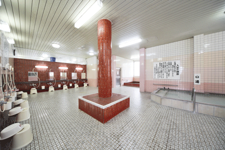 名物の養心薬湯には、袋詰めされた入浴剤が沈んでいた。壁には岐阜薬科大学名誉教授のありがたい説明書き。しかし文字が剥がれてほぼ読めない。じんわり沁み入る温かさだが、二度三度と湯につかると肌に刺激も。漢方サウナはいわゆるスチームサウナで、横並びに4人ほどの小空間。煮出した薬草のにおいが充満し、時おり唸りをあげてスチームが噴き出す。小さいながらも水風呂も。この際、養心薬湯、サウナしきじ、プレジデントを薬草スチーム日本三選と命名したい。浴室にボディソープやシャンプーの設置はなく、持参するかフロントで購入するか。それなのに客の数以上にお風呂セットのカゴが置いてあって、長期滞在客だろうか地元常連客の物だろうか。柱の回り縁は荷物置き場で、腰かけるなら湯船の縁でと暗黙のルールもあるらしく、一般的なマナーとはまるで逆。昔ながらの銭湯にも似た雰囲気だ。