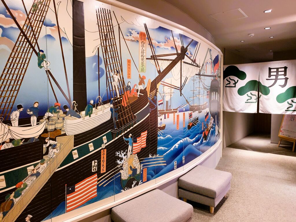 フロントで入館コースを選んで、リストバンドを受け取る。今回はフリータイムにしたので、館内着とタオルセット付き。浴室はやや年季を感じさせる造りとなっており、円を描いた室内にぐるりと湯船を配置し、中心に洗い場が円を描いて並ぶ。サウナは高温と低温の2室あって、高温はikiヒーターで毎時00分にオートロウリュ。低温は正面が金属パネルの見たことのない、おそらく遠赤外線ヒーター。水風呂の隣にぬる湯が並んでいるのも好ポイントだ。
