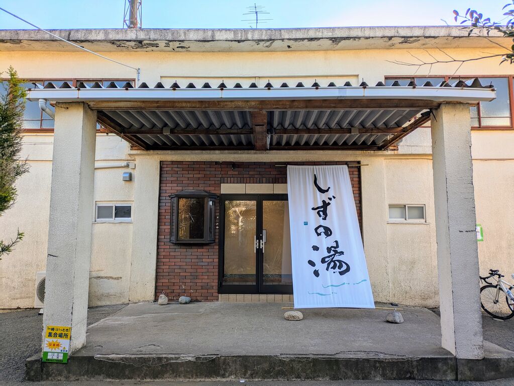 各駅停車の小田急相模原駅が最寄り。駅の踏切を境に東は相模原市、西は座間市。母校を眺めたり、ガス遠赤外線ヒーターでおなじみの日精オーバルを眺めたりと寄り道して、そこからはずっと住宅地。曲がり角に看板がないのは昔からで、この辺りは道幅が狭いので迷うこと必至。おまけに夜だと薄暗い。店先には大きく「しずの湯」と書かれた日よけ暖簾を出し、店先はすっきりと片付いていた。薪を燃やすための廃材もきれいさっぱり。かつて男女で分かれていた入口を一方通行とし、下足箱はゲートを通過してから。料金は後払いで、そのまま脱衣所へ。時間管理は自らおこなう。改装を機に男女浴室をぶち抜いて一体化し、男性専用施設に。