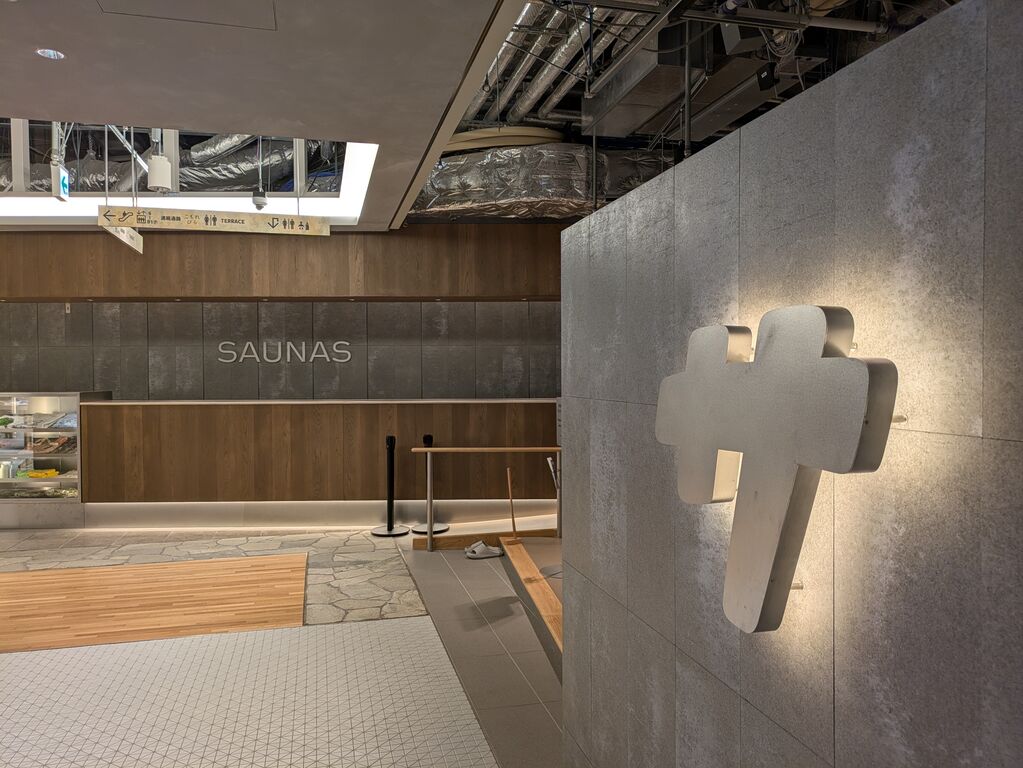 山手線に新しく誕生した高輪ゲートウェイ駅。駅前はTAKANAWA GATEWAY CITYとして再開発され、NEWoMan高輪には約200店が入居する。そのひとつが高輪SAUNASで、今年2月9日にオープン。同じフロアにはアパレルやカフェなどが並び、SAUNASのエントランスも洗練された雰囲気。渋谷SAUNASにつづく2号店で、こちらも『サ道』の原作者・タナカカツキ氏によるプロデュースだ。渋谷と異なるのは、4時間か80分か自ら利用コースを選んで入館手続きすること。そして、浴室は男女日替わりではなく、固定化されていること。