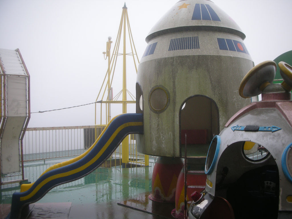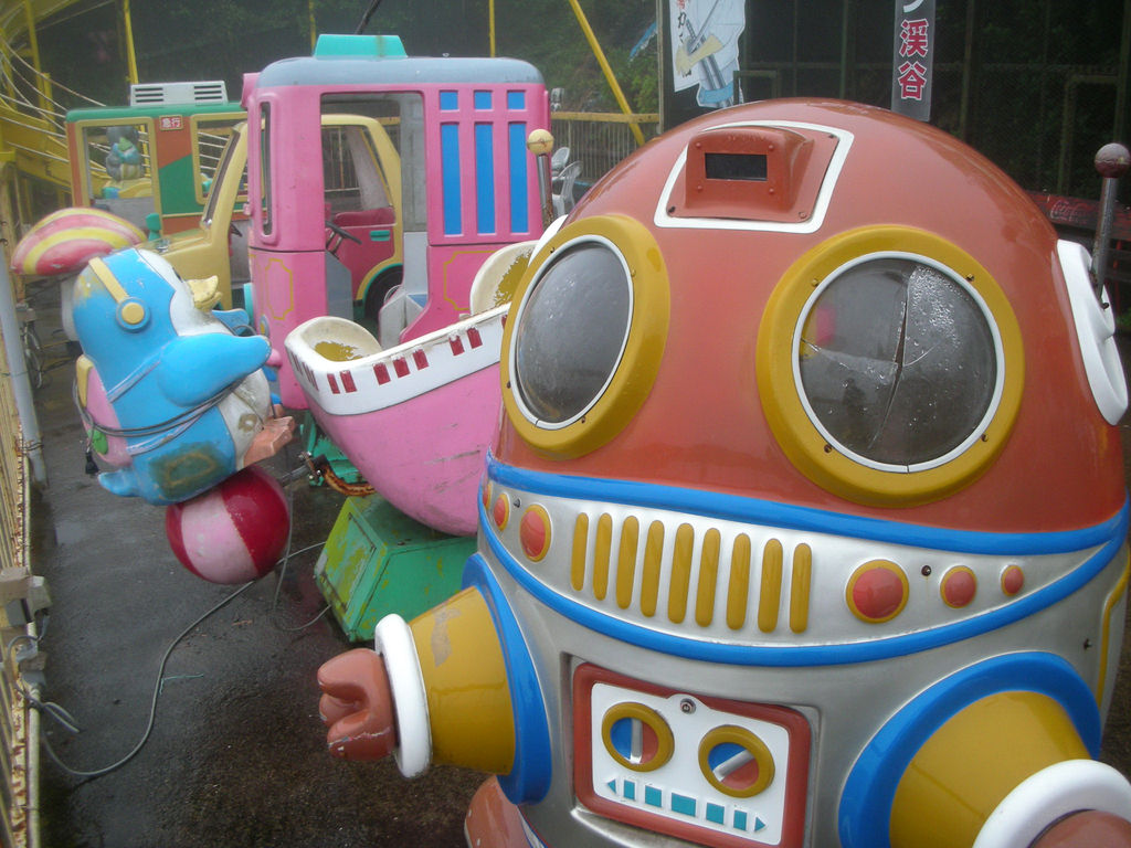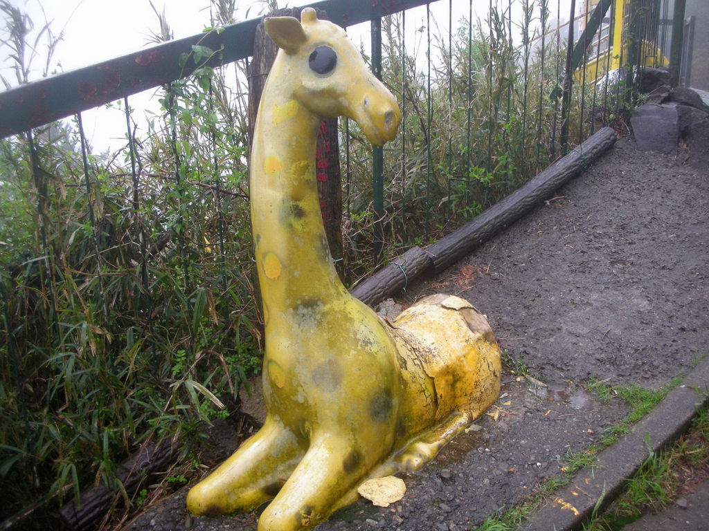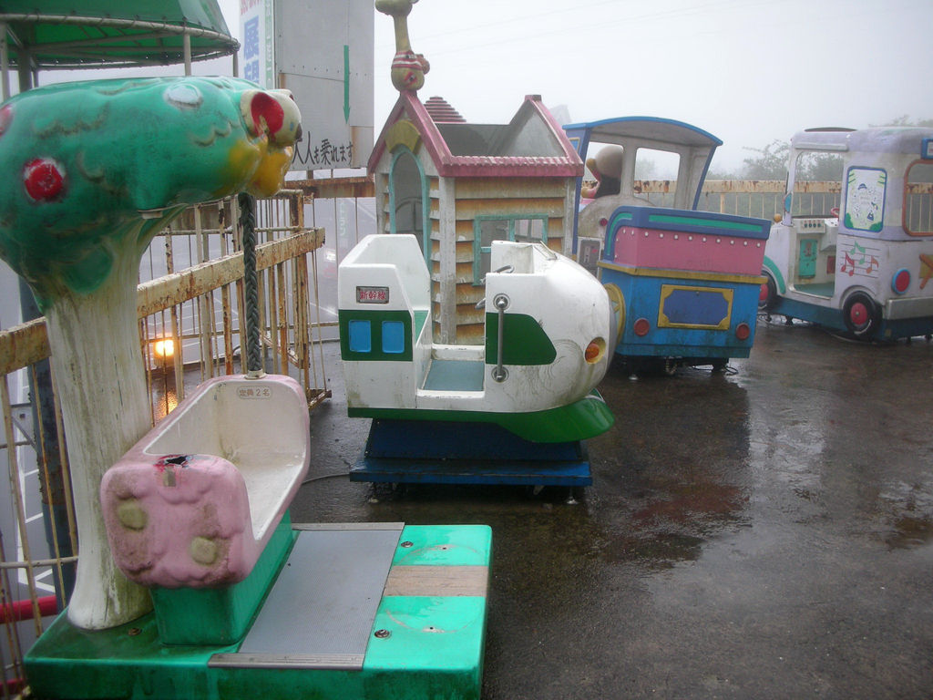 むかしは設備投資に熱心だったようだが、遊具はすでに時代遅れ。「SLに乗って筑波を走ろう」とあるが、SLなんてどこにもないし、無料スペースシャトルは子供向けのすべり台だし、どこにもビックリハウスなんてないし、神秘ガマの滝は水が流れていないし、なぜかシマウマが佇んでいる。普通そこは鹿だろ、と思うがキリンやら変なオブジェやら、やりたい放題な感じもする。