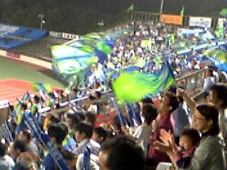 湘南シーレックスが今年いかに強いかを友達に聞かせてやったら、「っていうか、湘南って言ったらベルマーレじゃん」とバッサリ。シーズンは後半戦に突入したが、再び首位に立つなど、J1昇格に向けて確かに目が離せない。といったわけで、平塚競技場にて久しぶりにベルマーレを観戦した。チームの成績と観客動員は比例するのか、19:00キックオフだというのに、16:30には総合公園の駐車場はすべて満車になったという。30分ほど前じゃダメなのか…。警察署となりの臨時駐車場もラスト2台。ようやく止められたときには、すでに試合が始まってしまっていた。
