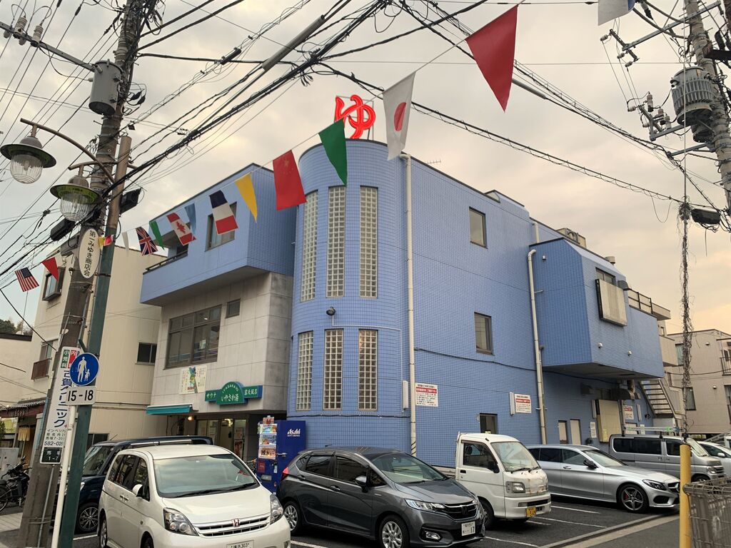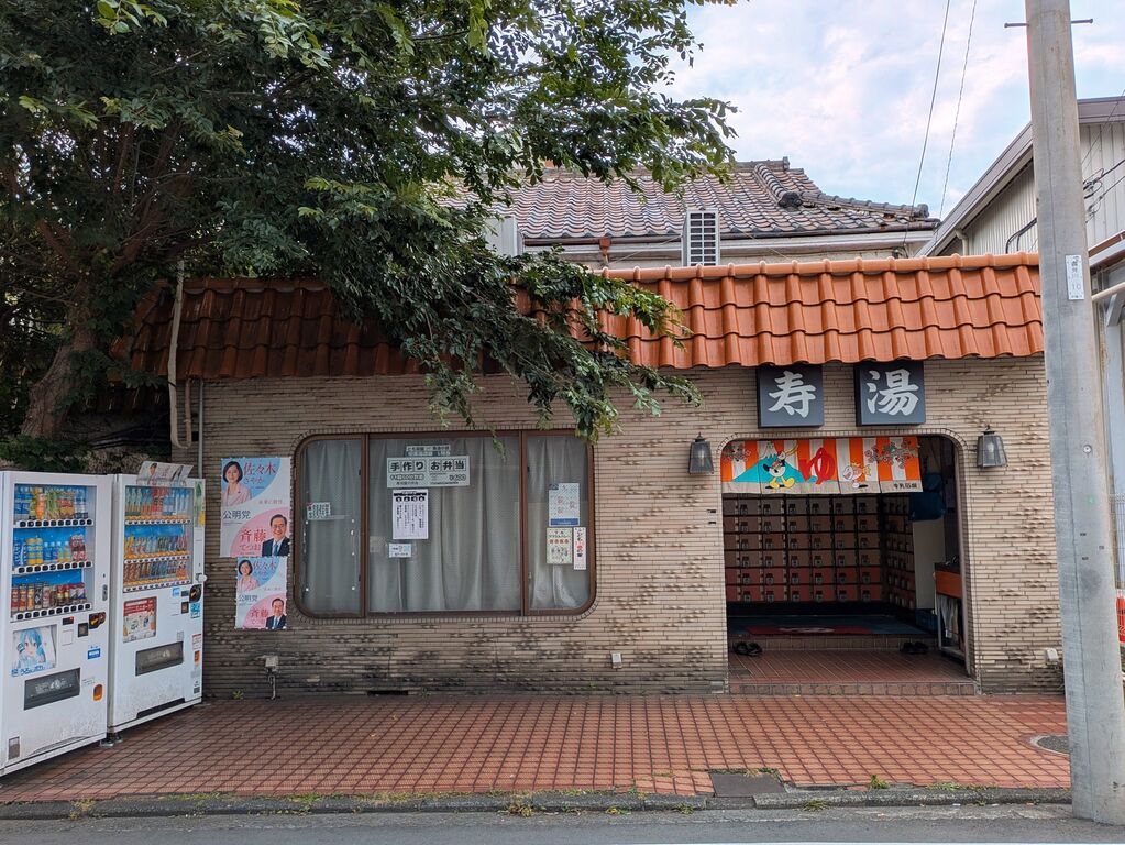 京急の鶴見市場駅は北に旧東海道、南に第一京浜(国道15号線)が並走し、駅を出ると戸建の住宅地が広がっている。東海道の整備とともに海産物を扱う市が開かれたのが由来だそうで、江戸から5番目にあたる一里塚も残る。寿湯は旧東海道に面して建ち、鶴見市場唯一の銭湯だ。フロントで料金を支払い脱衣所、そして浴室へ。