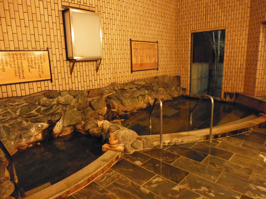 大浴場は地下1階。傾斜地に建っているため庭に面してはいるが、露天風呂はなく、内風呂のみ。2つ並んだ湯船は大きい方が早雲山から、小さい方が上強羅からの引き湯で、どちらも源泉かけ流し。保温と保湿効果(早雲山)、美肌効果(上強羅)を謳っているが、含有成分を実感できるほど大きな違いはない。客の少ない時間帯を狙ったわけではないが、独り占めしてのんびり入浴できた。ちなみに週末など混雑時は宿泊客優先となり、日帰り利用は制限される場合があるので要確認。別料金で貸切露天風呂もある。箱根強羅温泉 ゆとりろ庵