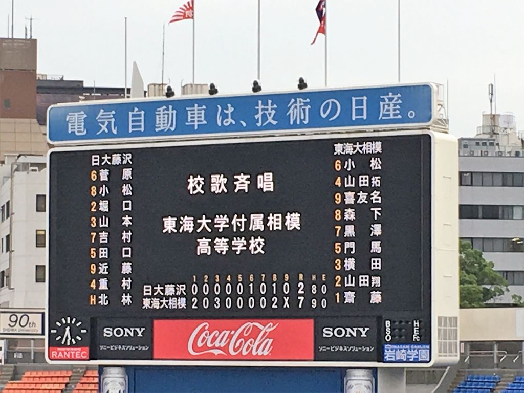 しかし、2点目を許した直後に、2ランを浴びせるとはさすがの森下君。今日4打点の活躍を見せ、東海大相模が準決勝4つ目の枠を勝ち取った。試合後には相手スタンドから「甲子園行けよー」という声援も聞こえたが、次の相手は日大藤沢の兄弟校である日大高校。またしても色鮮やかなピンクのメガホンだ。準決勝は7/28、横高×桐光、日大×東海の組み合わせ。