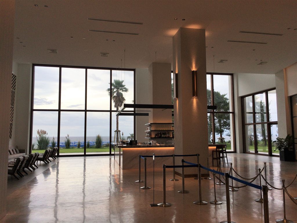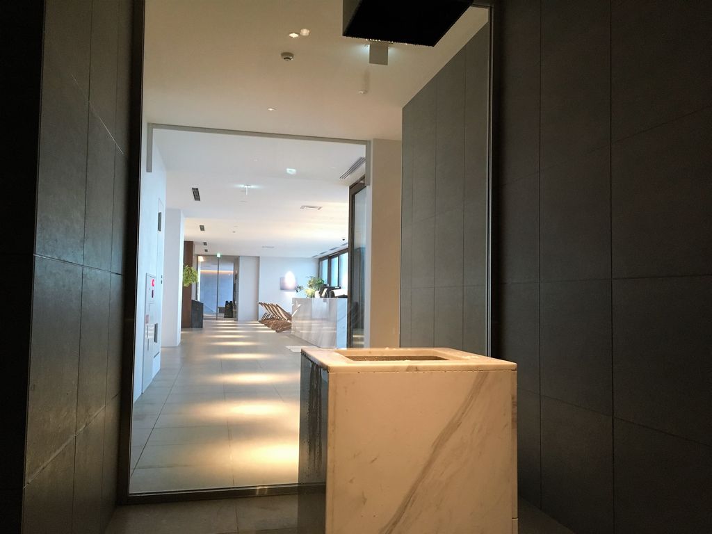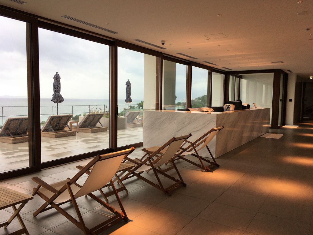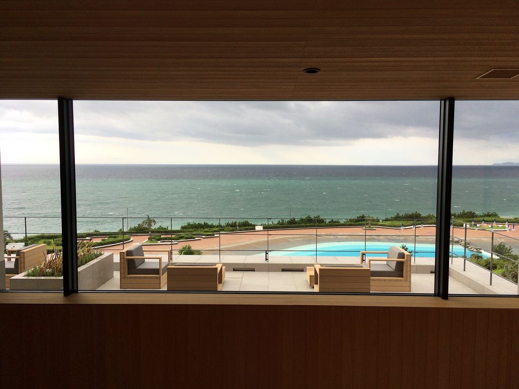 リゾート気分を満喫したい客の目当てはインフィニティプール。室内から屋外へと広がり、さらに目の前に広がる海、遥か向こうの水平線との一体感。澄み切った青空の下ならば、3色の青の鮮やかさにきっと心奪われるだろう。めったに雪が降らない土地柄にせよ、冬の時期や悪天候に屋外はつらい。ファイヤープレイスとして暖炉を設けたおしゃれラウンジのほか、カフェバーに並んでわずかな休憩スペース。しかもカフェバーは12時オープンだから、せめて自販機くらい置いていただかないと。
