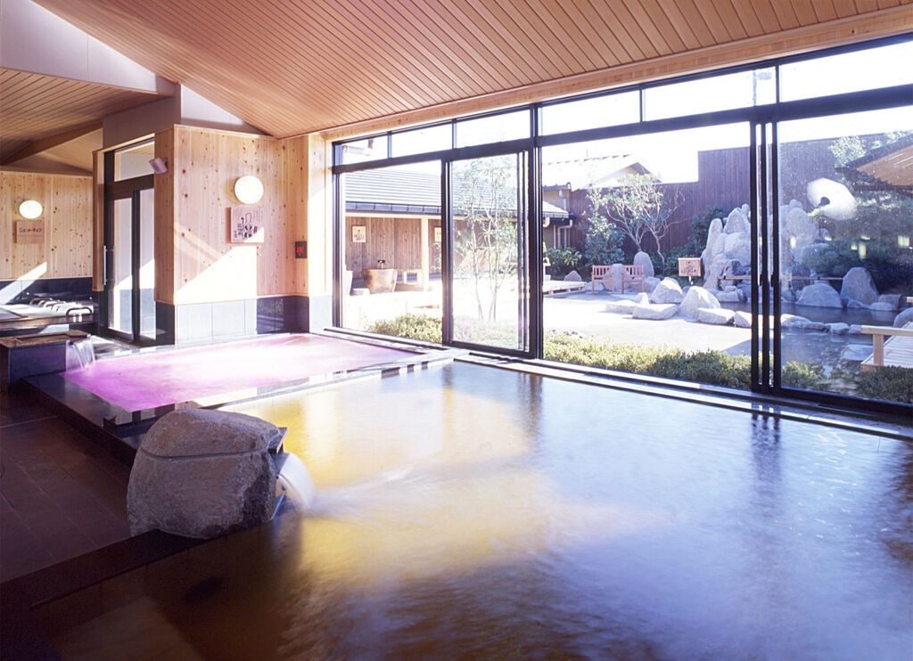 券売機でチケットを購入し、下足キーとロッカーキーを引き換える。フロントでは野菜のほか、地域の名物「いもフライ」などを販売する。館内は中庭を囲んで回遊型のつくりで、テレビを眺める休憩スペース、レストラン、個室付きの貸切風呂2室(予約制2時間3,000円・4,000円)、畳敷きの安眠の間(無料休憩室)、ボディケア、そして浴室から成る。