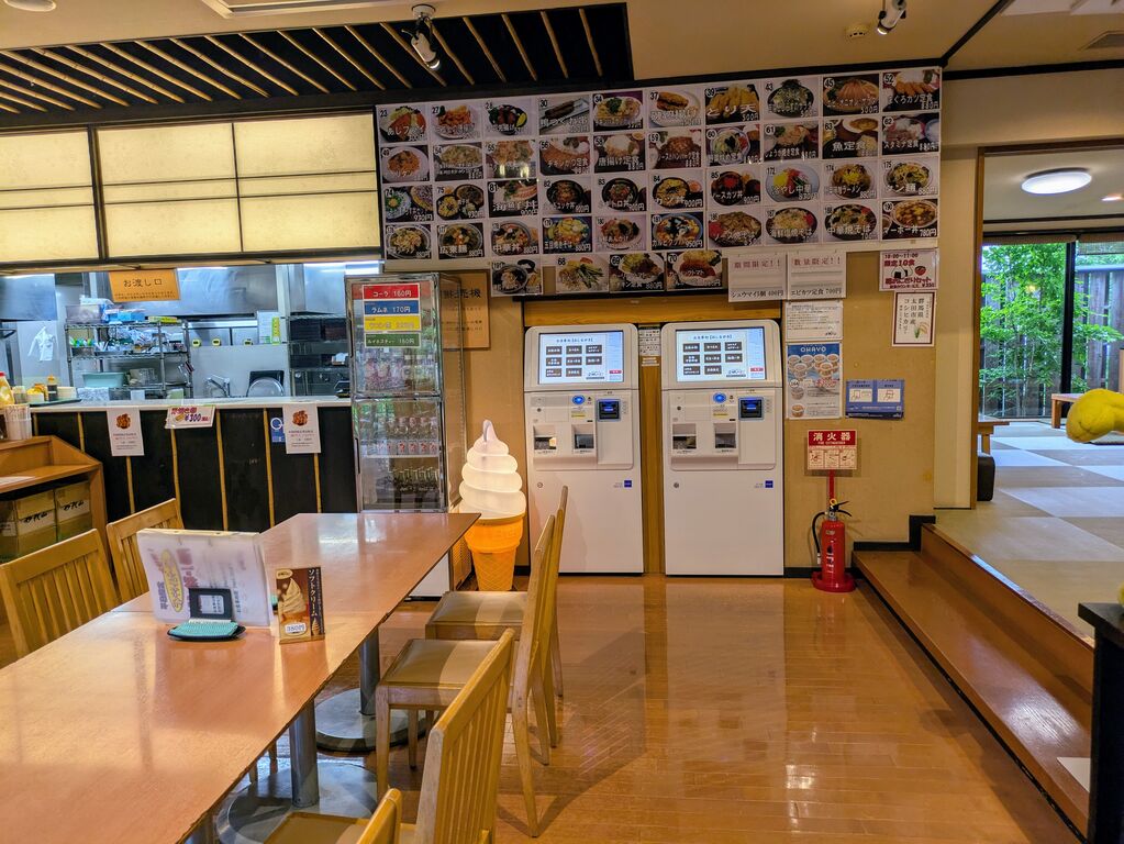 レストランはテーブル席、座敷席とあって、メニューはどれもリーズナブル。定食は一律880円と気持ちの良い値付けだし、平日限定の入館・ランチのセットは1,400円と魅力的。イオンモールでの食事も検討したが、やはり価格と気軽さに勝負あり。平日でも夕飯時には賑わいを見せていた。温泉に浸かって食事をして、あとは帰って寝るだけという客も多いことだろう。ぐっすり眠れること請け合いだ。安眠の湯