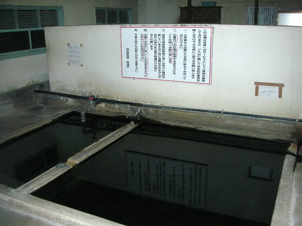 穴湯と地蔵湯の2軒があり、どちらも8:00〜19:00。100円。