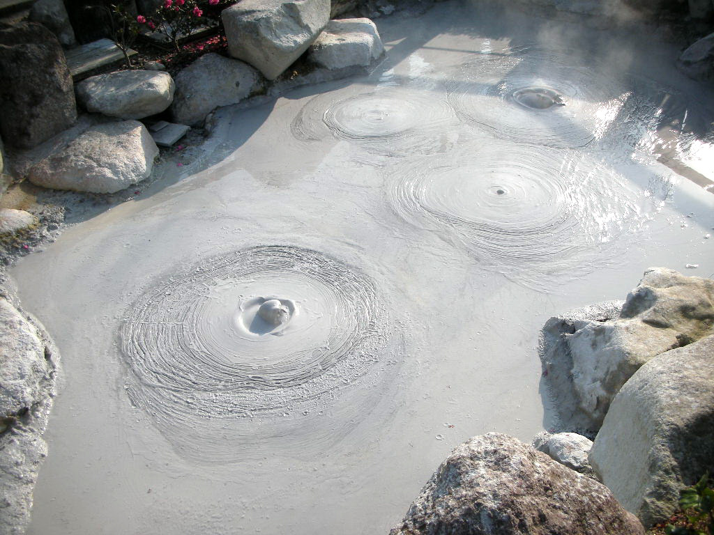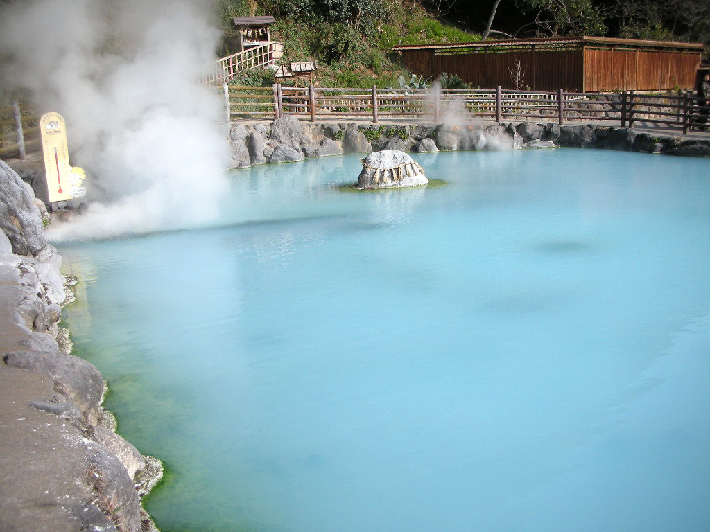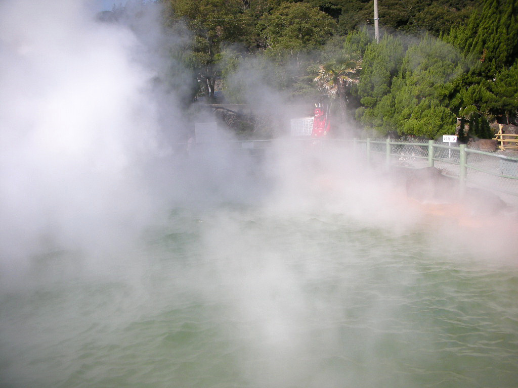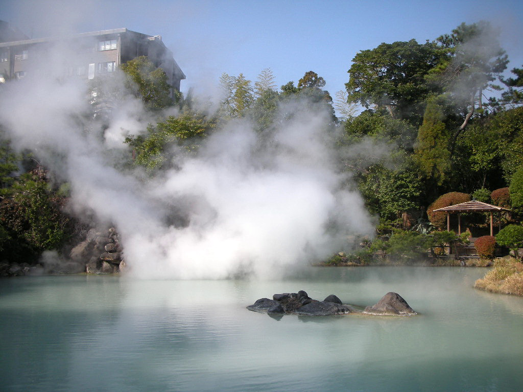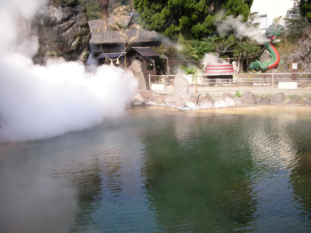 噴出する蒸気が朝日を浴びると、金龍が昇天しているように見えることから名づけられた。阿弥陀如来をはじめ、さまざまな仏像が祀られているさまは、さながら中国庭園のよう。鉄輪温泉などをはじめ、多くの施設に温泉を供給している。大人200円、小学生100円、小学生以下無料。10:00〜16:00、年中無休。