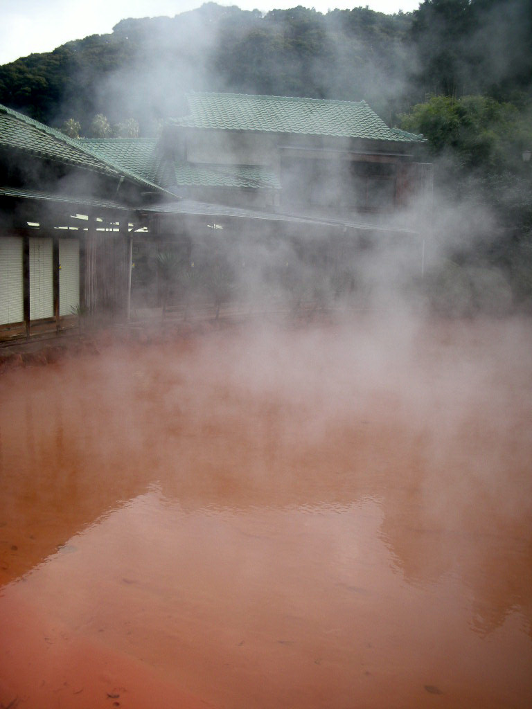 酸化鉄や酸化マグネシウムによって真っ赤な色をしていることからこの名が付いた。奈良時代の「豊後風土記」に赤湯泉と記された日本最古の地獄である。昭和2年(1927)の大爆発の際の高さは220mにもなったという。