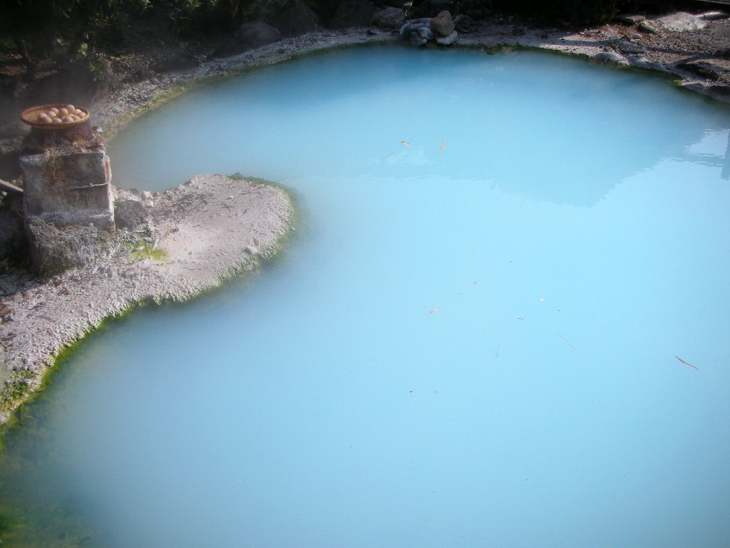 噴出するときは透明だが、外気に触れ温度が下がると白濁することから名づけられた。温泉の熱を利用した熱帯魚館を併設し、ピラニアなどが飼育されている。
