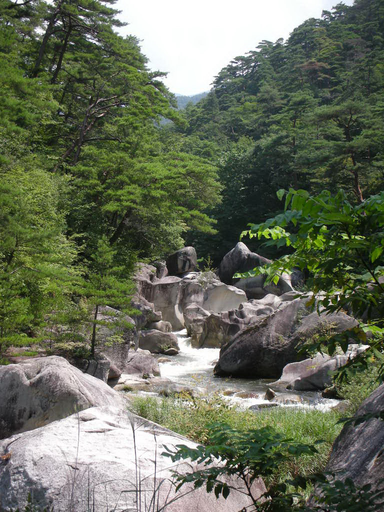 昇仙峡は甲府盆地の北側、笛吹川の支流である荒川上流の渓谷で、関東有数の景勝地である。昭和28年には国の特別名勝に指定され、全国観光地百選・渓谷の部第1位にも選ばれている。川の流れに花崗岩が削り取られ、また切り立った断崖が高くそびえている。オットセイ岩、らくだ石、はまぐり石、えぼし岩、夢の松島などと奇岩には名前が付けられているが、見方によっては…という感じ。そんな景色が延々と続く。