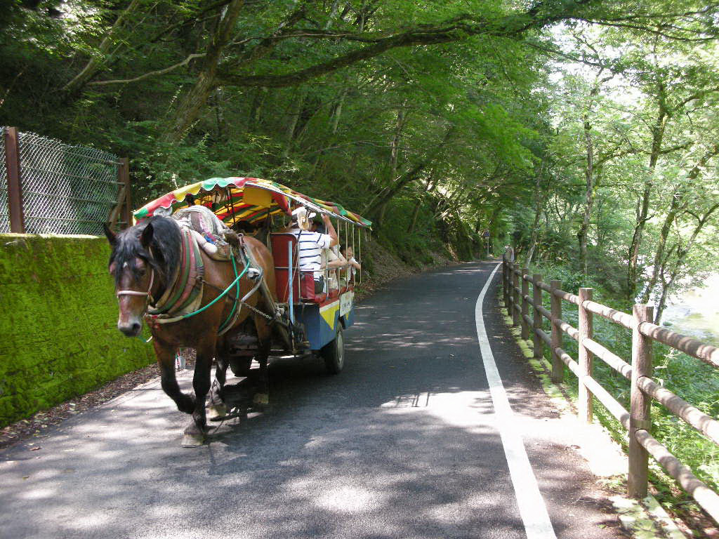 天神森・石門(能泉)間には乗り合いの片道1000円のトテ馬車もある。手綱をひいたおじさんは観光ガイドをしていたのだろうか。眺めの良いところで止まるわけでもなく、ただ静かに通り過ぎて行ったが。