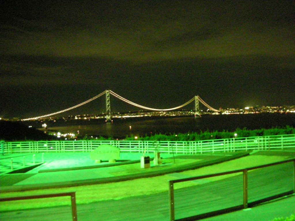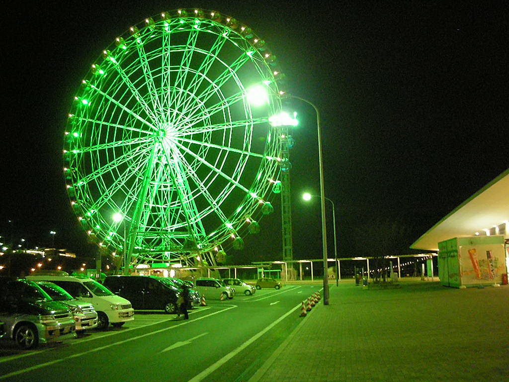 帰りは神戸淡路鳴門自動車道経由で。淡路島はかなり大きな島で、高速道路にしては多少起伏とカーブがあるものの、退屈な道だった。スピードは出せるが、いかんせん夜だと抜かすべき車が少ない。島の北端には淡路SAがあり、上下線施設の往来が可能。大観覧車と明石海峡大橋のライトアップが見事だ。淡路島の特産品といえば玉ねぎということで「玉ねぎラーメン」を食すが、ねぎラーメンとは違ってパンチに欠ける味。