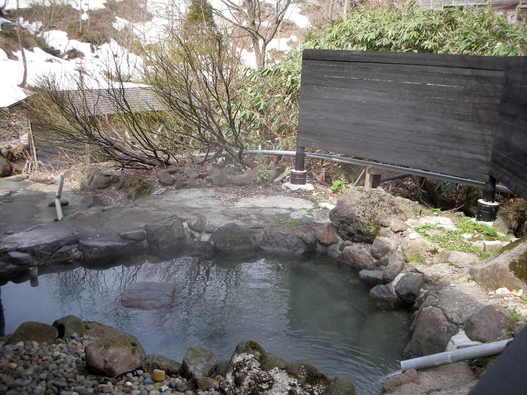 唐子の湯は男女別浴で内湯のみ。石の湯は混浴で内湯と露天風呂が3ヶ所(うち1ヶ所は女性専用)がある。内湯の鄙びた湯治場風情から一転、露天風呂は石組みで開放感のある湯船だ。巨岩がごろごろと転がる先達川の流れに面し、雪解けで水量を増しているせいか、轟音が間近に聞こえる。また、孫六温泉自体が谷間にあるため、周囲の山も近くに迫り、のどかな景色を演出している。内湯に比べてお湯はぬるめなので、長湯を楽しむ客も多い。孫六温泉のお湯は、その泉質と効能から「山の薬湯」と呼ばれているそうだ。内湯にじっくりとつかって療養するのも良し、露天風呂で気分をリフレッシュするも良し。乳頭温泉郷で秘湯らしさを求めるなら、孫六温泉を訪ねてみると良いだろう。