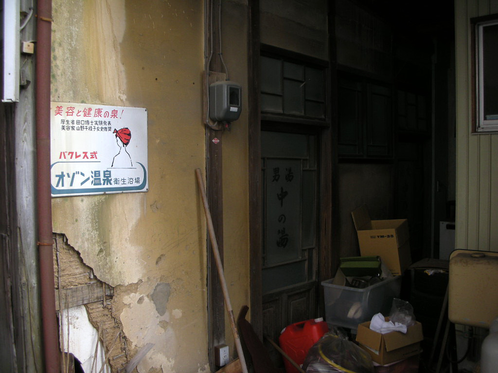 前回は「斉藤の湯」の上の湯をご紹介したので、今回は下の湯である。両者の距離は200mほどしかなく、下の湯もまた大滝根川沿いに建つ、こじんまりとした旅館だ。上の湯では子供達が外で遊んでいたが、下の湯ではおばちゃんたちが玄関わきの居間で寛いでいた。宿の人が出迎えてくれるわけではなく、どうしたものかと思っていたら、「お金はあとで払えばいいんだよ」と浴衣姿でうろうろしていたおじさんが言う。宿の人はいないんですか?と聞くと、「いるよ、そこに」。おばちゃんのうちの1人だった。そして料金は先払いだった。適当な感じが田舎っぽくていい。