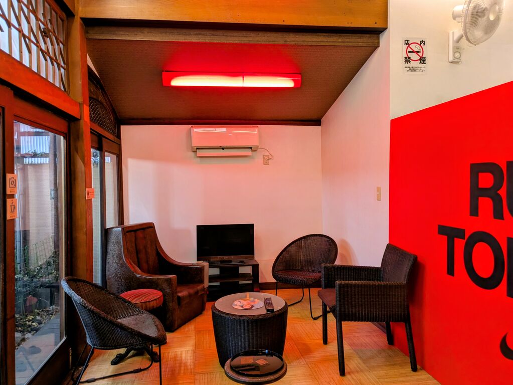 サウナがあるのは男湯のみ。遠赤外線ヒーターと小型電気ヒーターを備え、ベンチ3段で20名ほどを収容。銭湯サウナとしては広々としているが、20分おきの「爆熱オートロウリュ」では、パンカールーバーからの送風もあって、なかなかの熱さ。水風呂は90cmの深さがあり、バイブラと極的クールの入浴剤で爽快感がすごい。田中みずき師が描いた富士山のペンキ絵も。タープで覆った半露天のととのいスペースには椅子10脚が置かれ、みな黙浴でマナーが良い。