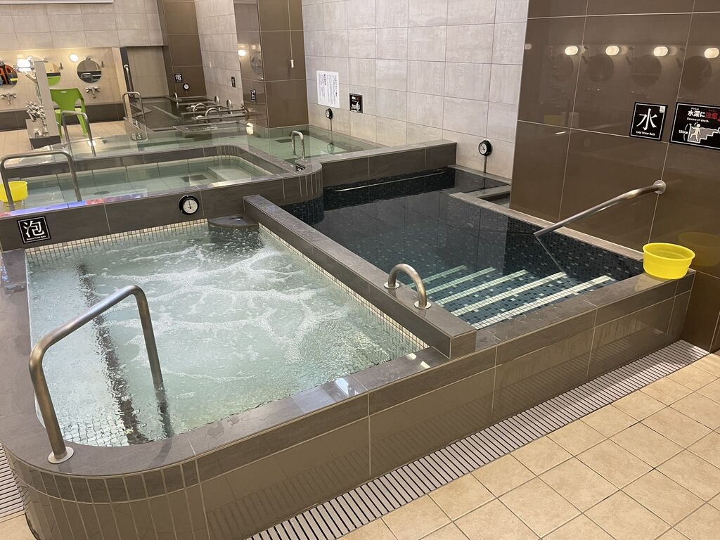 店内に大きく掲げられているのは、クラウドファンディングの支援者一覧。半年間を経て、8/1にリニューアルオープン。明るい内装もそうだろうが、なによりサウナに重点を置いているらしく、ツイッターなどでも盛況ぶりを目にすることはしばしば。平日の夕暮れ時だったが、脱衣所からして客でごった返し、空いているロッカーはごくわずか。ちなみにロッカーは100円リターン式だ。天然鉱石の温熱効果を謳ったバドガシュタイン風呂、袋詰めされた入浴剤が浮かぶ薬湯風呂のツートップをメインに、各種ジャグジーが脇を添える。シャンプーやボディソープの設置もあるし、湯船だけでもじゅうぶん楽しめる。