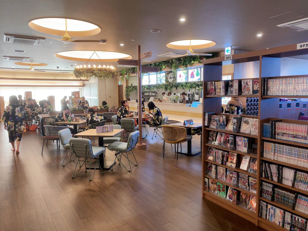 飲食は大きく分けて和食レストラン、フードコート、カフェの3店舗が横並びとなって競い合っている。年配ファミリーなら和食、子づれファミリーならフードコートといった具合に、どんな客層にも対応。フードコートもがっつりステーキからエスニックなど4つの個性があって、厳選したメニューはいずれも本格的。ピークタイム以外はフードコートも休憩所として利用できるが、浴室のみの利用ならば館内奥の畳スペースを。