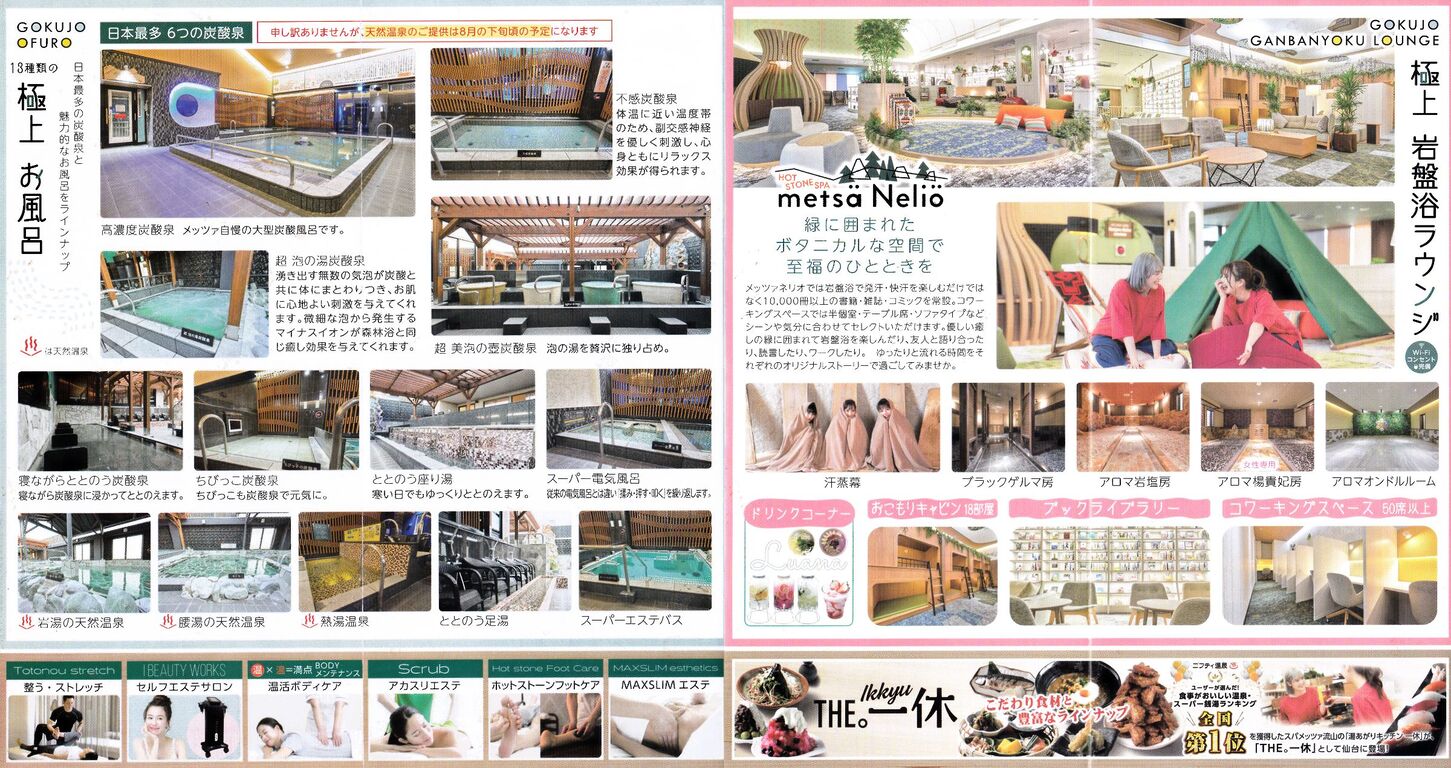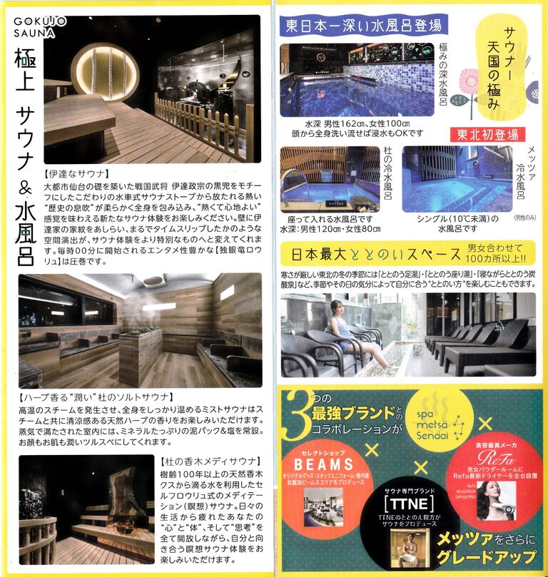 ¥¹¥Ñ¥á¥Ã¥Ä¥¡¤È¤·¤Æ²þÁõ¤¹¤ë¤Ë¤¢¤¿¤ê¡¢Â礤¯ÎϤòÆþ¤ì¤¿¤Î¤Ï¥µ¥¦¥Ê¤Ê¤Î¤À¤í¤¦¡£¸ÄÀ¤Î°Û¤Ê¤ë3¤Ä¤Î¥µ¥¦¥Ê¤È3¤Ä¤Î¿åÉ÷Ϥ¤¬¤¢¤ë¡£¥á¥¤¥ó¤È¤Ê¤ë¤Î¤Ï°ËãÀ¯½¡¤Î³õ¤ò¥¤¥á¡¼¥¸¤·¤¿¡Ö°Ëã¤Ê¥µ¥¦¥Ê¡×¤Ç¡¢¿å¼Ö¤¬²ó¤Ã¤ÆËè»þ00ʬ¤Ë¥ª¡¼¥È¥í¥¦¥ê¥å¡ÊÆÈ´ãε¥í¥¦¥ê¥å¡Ë¤¬¤ª¤³¤Ê¤ï¤ì¤ë¡£¤Û¤«¤Ë¥»¥ë¥Õ¥í¥¦¥ê¥å¥µ¥¦¥Ê¤È¥¹¥Á¡¼¥à±ö¥µ¥¦¥Ê¡¢¿åÉ÷Ϥ¤Ï¡ÖÅìÆüËܰ쿼¤¤¡×162ѤÈ120cm¡Ê¤¤¤º¤ì¤âÃËÀ¦¡Ë¡¢¥·¥ó¥°¥ë10¡î°Ê²¼ÀßÄê¤ÏÅìË̽éÅоì¤À¤È¤¤¤¦¡£¤¿¤¯¤µ¤ó¤Î°Ø»Ò¤¬Ê¤ó¤À¡ÖÆüËܺÇÂç¤È¤È¤Î¤¤¥¹¥Ú¡¼¥¹¡×¤â¼«Ëý¤Ç¡¢¤¤¤í¤¤¤í¤È°ìÈ֤ˤ³¤À¤ï¤ê¤¿¤¤¤è¤¦¤À¡£