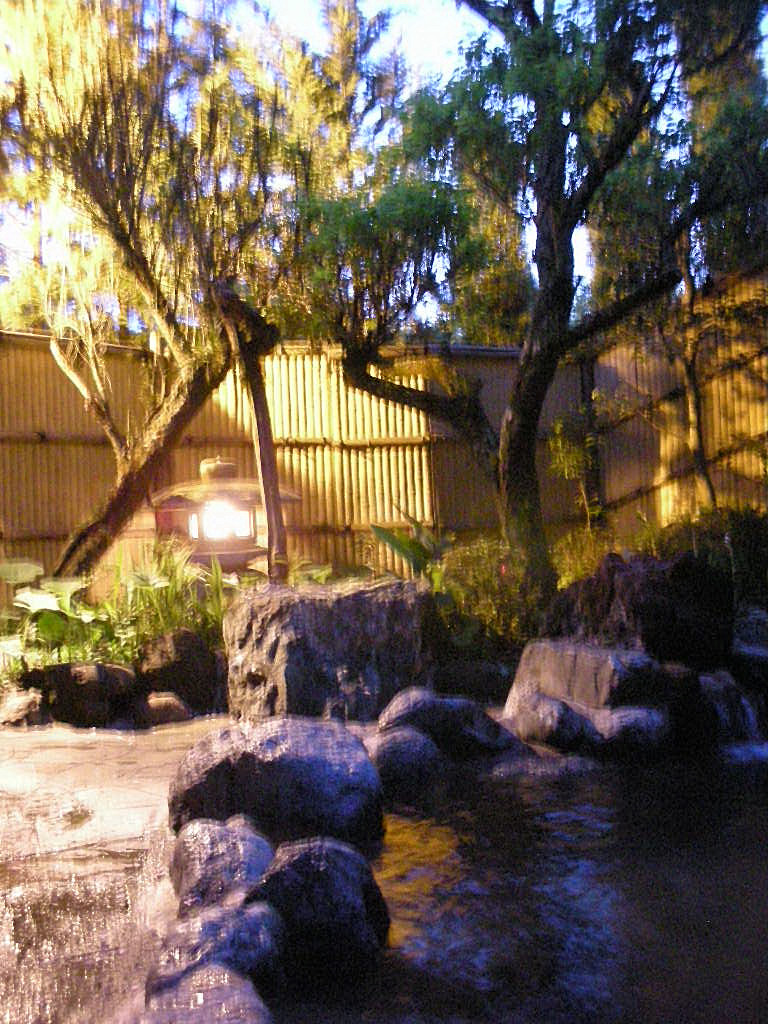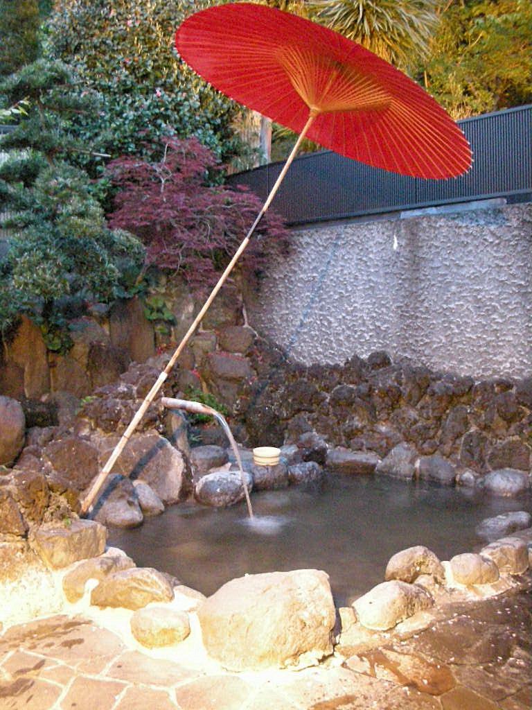 源泉は20℃の鉱泉で、pH10.1の高アルカリ性。成分を満たさず、温泉法の温泉には該当しないというが、七沢のほかの湯と肌ざわりなどの点についてあまり変わりはない。あえて言えばローションで包み込むようなすべすべ感より、つるつる感の方が強い気もするが。カランから出るお湯のほうがむしろすべすべ感あり。湯船は総檜で、黒い漆で仕上げている。つるつる滑るのは泉質のせいだけではないようだ。